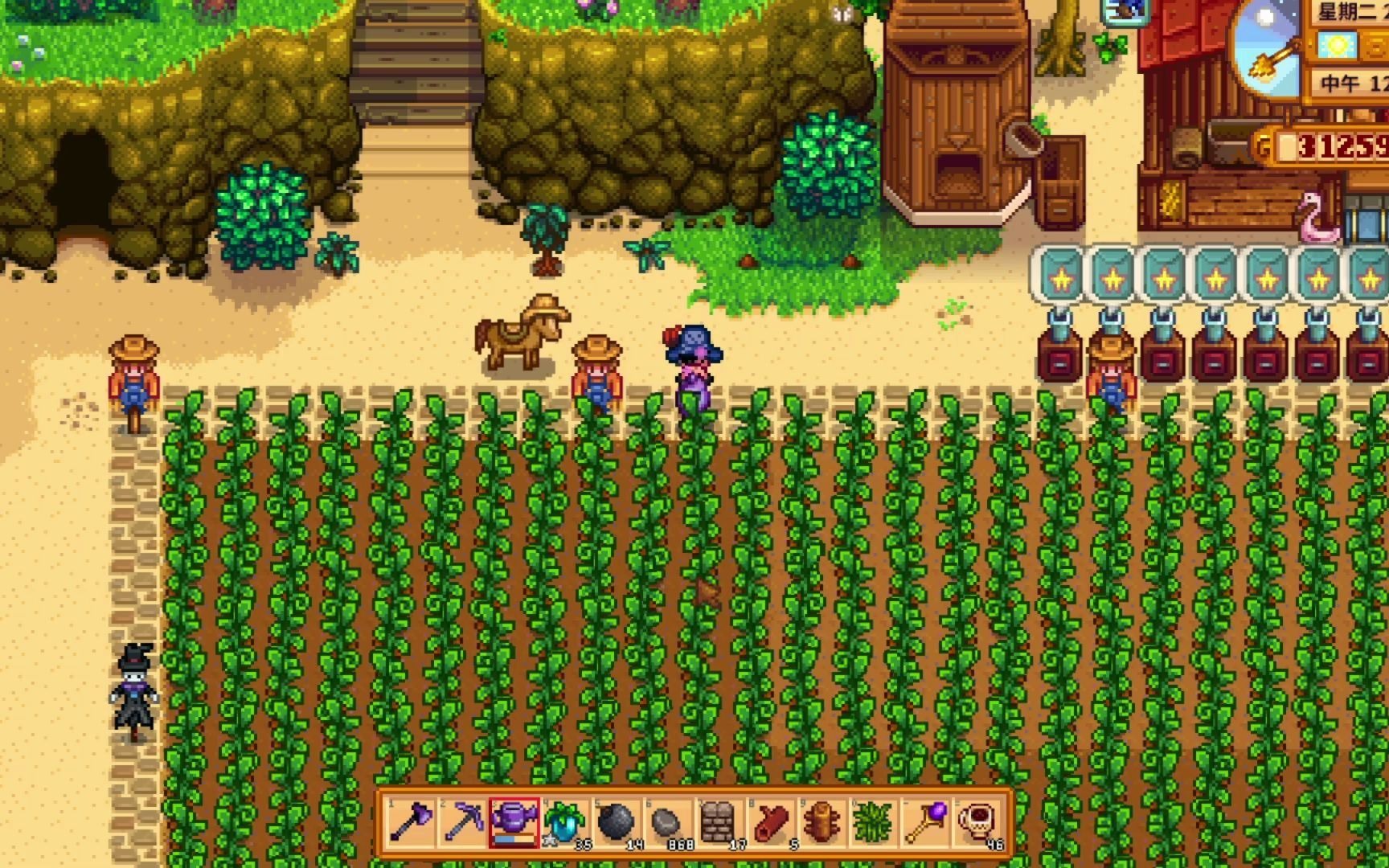 水资源管理也很重要,特别是在夏季。高级洒水器虽然方便,但会消耗大量水资源,咱们可以根据作物实际需求选择合适等级的洒水器。下雨天记得关掉洒水器,游戏会自动给作物浇水。钓鱼时如果钓到垃圾别急着扔掉,用回收机可以变成有用的煤炭或矿石。温室种菜是个不错的选择,既节省空间又能避免季节变化带来的风险。